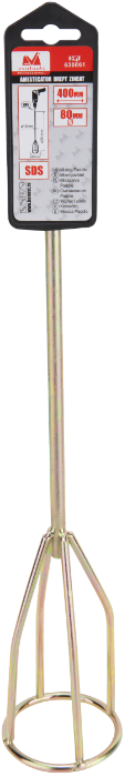 Марка Evotools Professional представлява гама инструменти, предназначени за домашни майстори, с високо качество, което ги прави подходящи за полупрофесионална употреба. Правият бъркач е инструмент, използван за смесване на течни или полутечни материали, като боя, мазилка, разтвор или бетон. Състои се от метален вал, оборудван с кръгла, конусовидна перка, проектирана да осигури оптимално хомогенизиране на течностите. Този бъркач разполага със система за закрепване SDS.